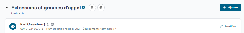 Vous vous trouvez maintenant dans les réglages de l'extension ou du groupe d'appel.