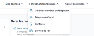 Naviguez jusqu'à « Fonctionnalités téléphoniques » et sélectionnez « Téléphonie Cloud ». La page d'accueil de votre système de Téléphonie Cloud s'ouvre alors.