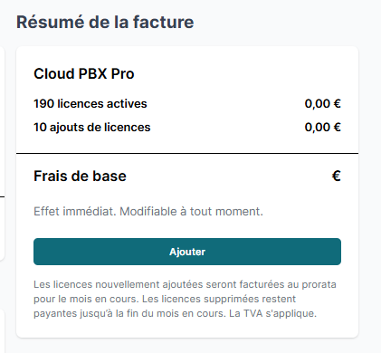 Les licences supplémentaires que vous avez réservées seront immédiatement utilisables, mais ne seront facturés qu’après le changement effectif de forfait.