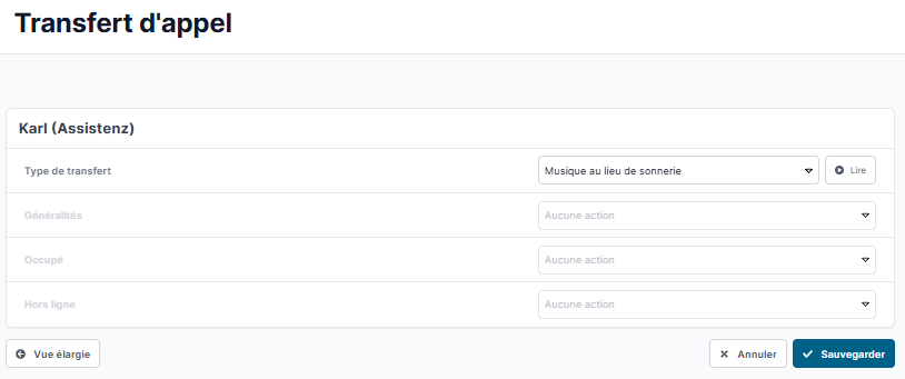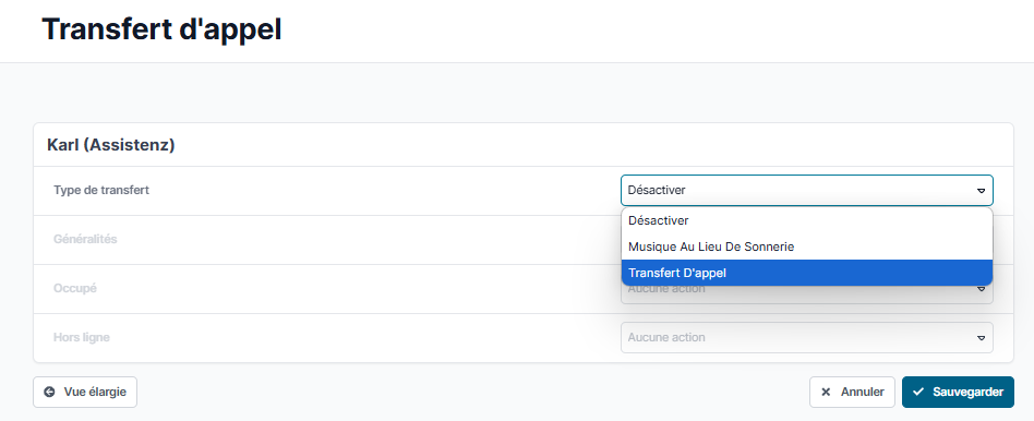 Pour pouvoir configurer un renvoi d’appel, veuillez sélectionner le point « Renvoi d’appel » sous « Type de renvoi ».