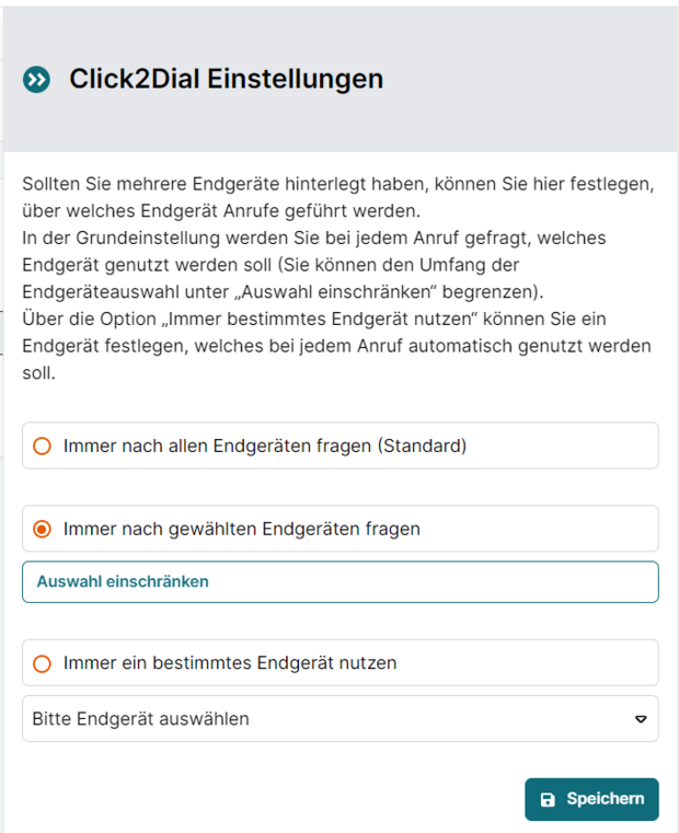 Dans ces paramètres, vous pouvez définir les terminaux qui seront disponibles lors de l'utilisation de Click2Dial. Vous trouverez plus d'informations à ce sujet dans la section correspondante ci-dessous.