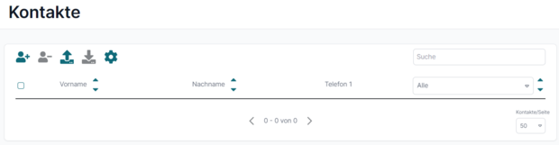 Dans la barre de recherche, il est possible d'effectuer une recherche par nom et prénom ou par numéro de téléphone et partie de numéro téléphone. Plus l'entrée de recherche est claire, plus les contacts sont filtrés. En outre, les entrées peuvent être triées selon certains critères grâce à la disposition des flèches dans les en-têtes.