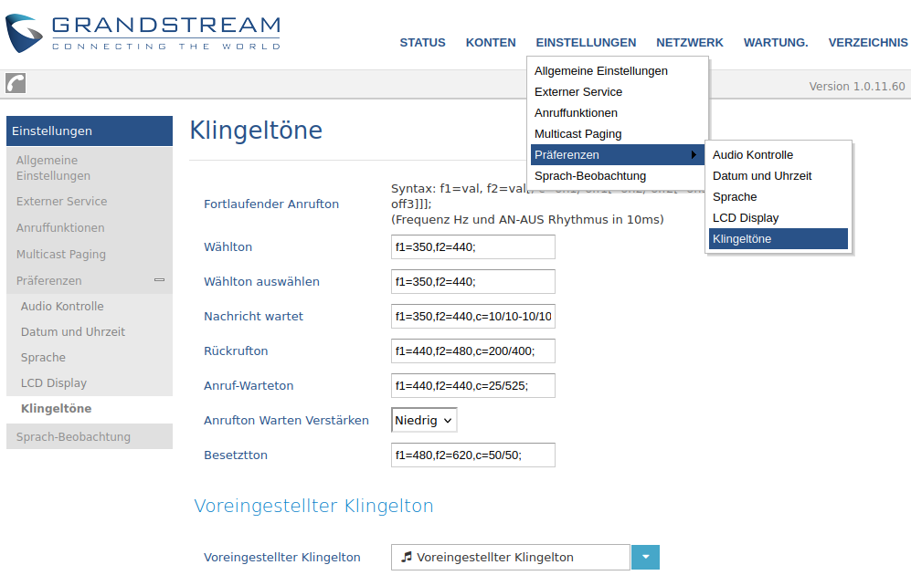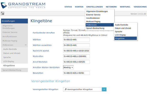 Cliquez sur l'onglet "Paramètres" -> Préférences -> Sonneries.