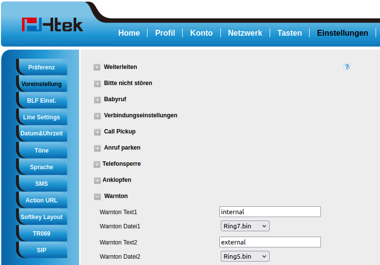 Vous pouvez ici faire la distinction entre les appels internes (alert-internal) et externes (alert-external) et choisir une sonnerie correspondante pour chaque catégorie.