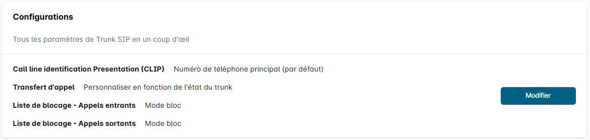 Ouvrez ensuite la configuration du Trunk SIP sélectionné en cliquant sur Modifier.