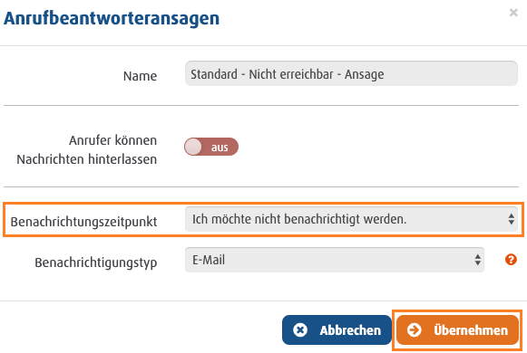Pour désactiver les notifications du répondeur dans la Téléphonie Cloud, nous vous recommandons de consulter nos instructions Configuration des renvois d'appel dans la Téléphonie Cloud. Vous trouverez des instructions détaillées sous le point 5.1 « Renvoi d'appel » / « Répondeurs/annonces ».