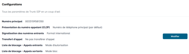 Après avoir enregistré vos paramètres, vous revenez à la vue détaillée du trunk. Les Trusted IP sont désormais affichées comme actives.