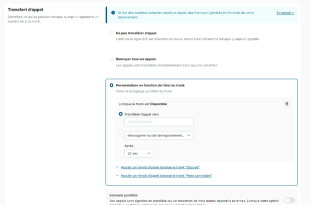 Plus d'informations dans notre article : Configurer les appels parallèles.