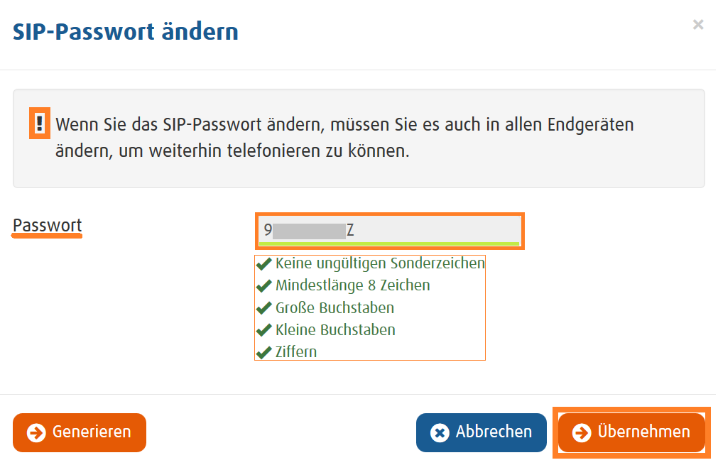 Vous pouvez changer le mot de passe SIP en cliquant sur l'icône du crayon à côté.