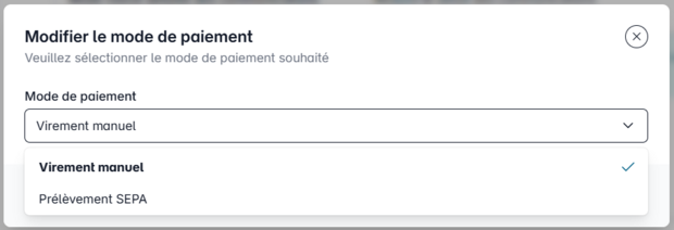 Dans la section « Modalités de paiement », vous pouvez mettre à jour le mode.