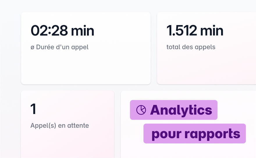 Identifiez rapidement les points de blocage dans vos scénarios d’appel et améliorez vos processus de gestion des appels ainsi que la charge de votre équipe grâce aux tableaux de bord en temps réel.